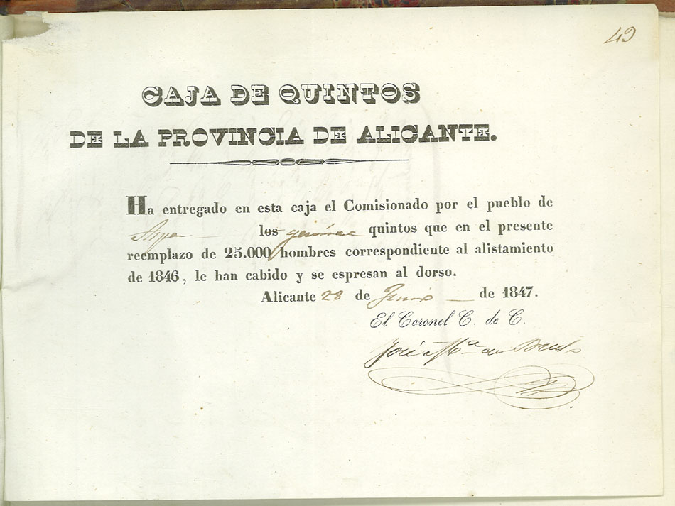 Actas de Alistamiento, 1846-1847
