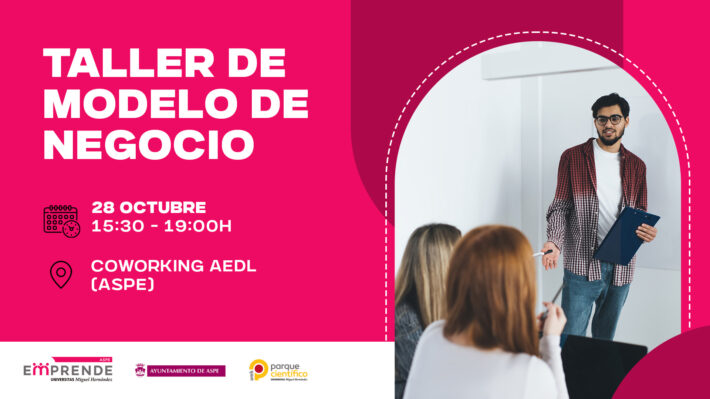 Ofrecer a los asistentes herramientas para que conviertan sus propuestas de negocio en proyectos sólidos es el objetivo del taller “Modelo de negocio” que han organizado el ayuntamiento de Aspe y el Parque Científico de la Universidad Miguel Hernández (PCUMH) de Elche el próximo lunes 28 de octubre. La sesión, enmarcada en el programa Aspe…