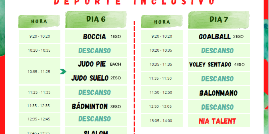 Los próximos 6 y 7 de abril se desarrollaran en el Pabellón Deportivo Municipal las ‘’I Jornadas Solidarias de Deporte Inclusivo’’ que organiza IES La Nía y que además participará todo el instituto al completo (todos los cursos y el profesorado).