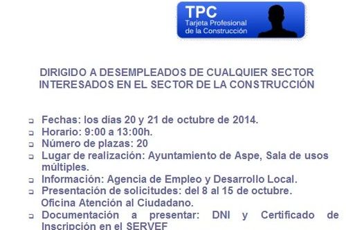 De 20 horas, que impartirá la fundación laboral de la construcción del 25 al 29 de enero de 2016.