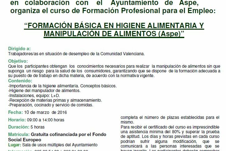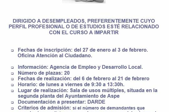 El Ayuntamiento de Aspe, a través de la Concejalía de Formación y Empleo, en su objetivo de formar a…