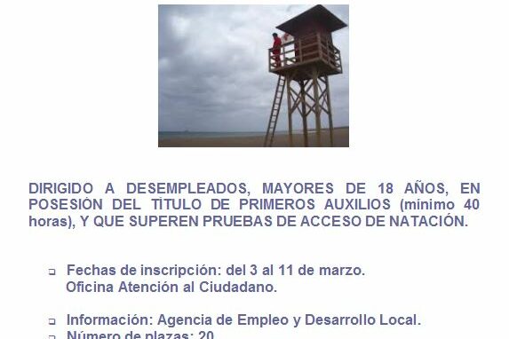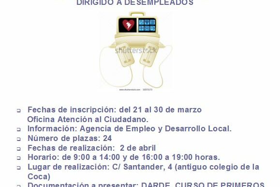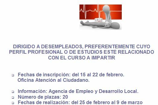 La Concejalía de Empleo y Formación convoca un curso gratuito de Primeros Auxilios para desempleados. Está dirigido preferentemente a desempleados…