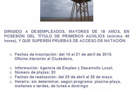 DIRIGIDO A DESEMPLEADOS, EN POSESIÓN DEL TÍTULO DE PRIMEROS AUXILIOS Y QUE SUPEREN PRUEBAS DE ACCESO DE NATACIÓN. Fechas de…