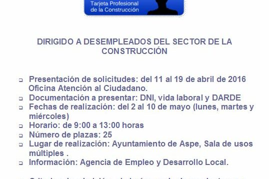 INFORMACIÓN EN LA AGENCIA DE EMPLEO Y DESARROLLO LOCAL DEL AYUNTAMIENTO DE ASPE. A partir del día 25 y hasta…