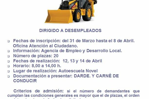 DIRIGIDO A DESEMPLEADOS, PREFERENTEMENTE CUYO PERFIL PROFESIONAL O DE ESTUDIOS, ESTÉ RELACIONADO CON EL CURSO A IMPARTIR. Fechas de inscripción:…