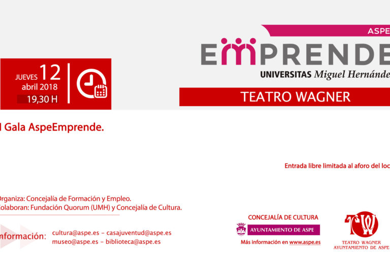 EL Teatro Wagner se viste de gala el jueves, 21 de noviembre, para entregar los premios del programa Aspe Emprende.…