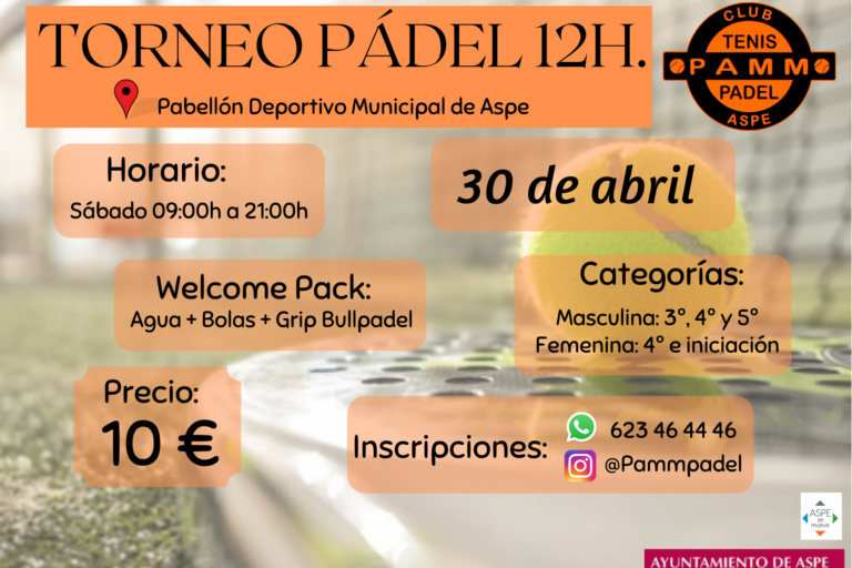 El campeonato lo organiza el Club PAMM Pádel Aspe este sábado, 30 de abril Este fin de semana, las pistas…