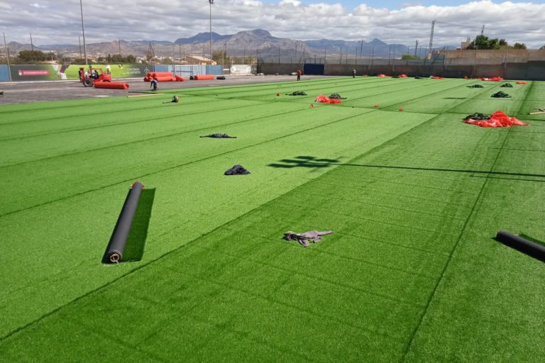Comienza la instalación del nuevo césped del campo anexo de las Fuentes