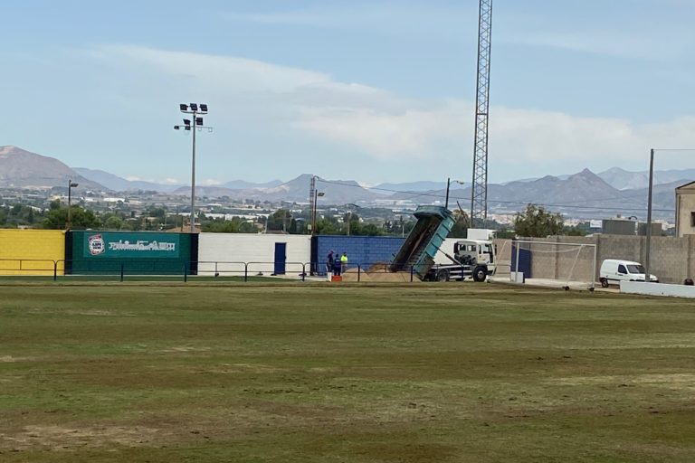 Comienza la resiembra anual del Campo de fútbol municipal Las Fuentes