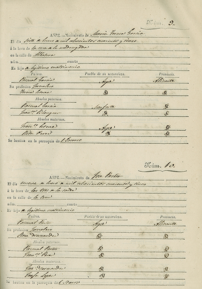 Registro civil de nacidos de la Villa de Aspe