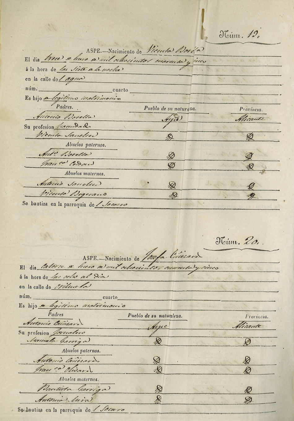 Registro civil de nacidos de la Villa de Aspe