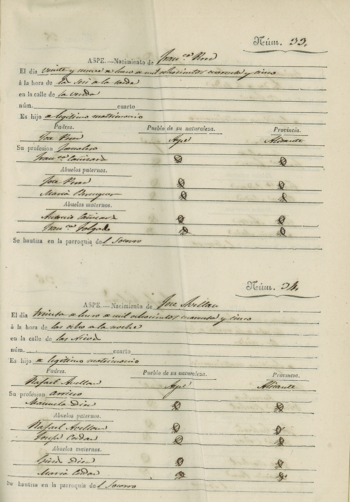 Registro civil de nacidos de la Villa de Aspe