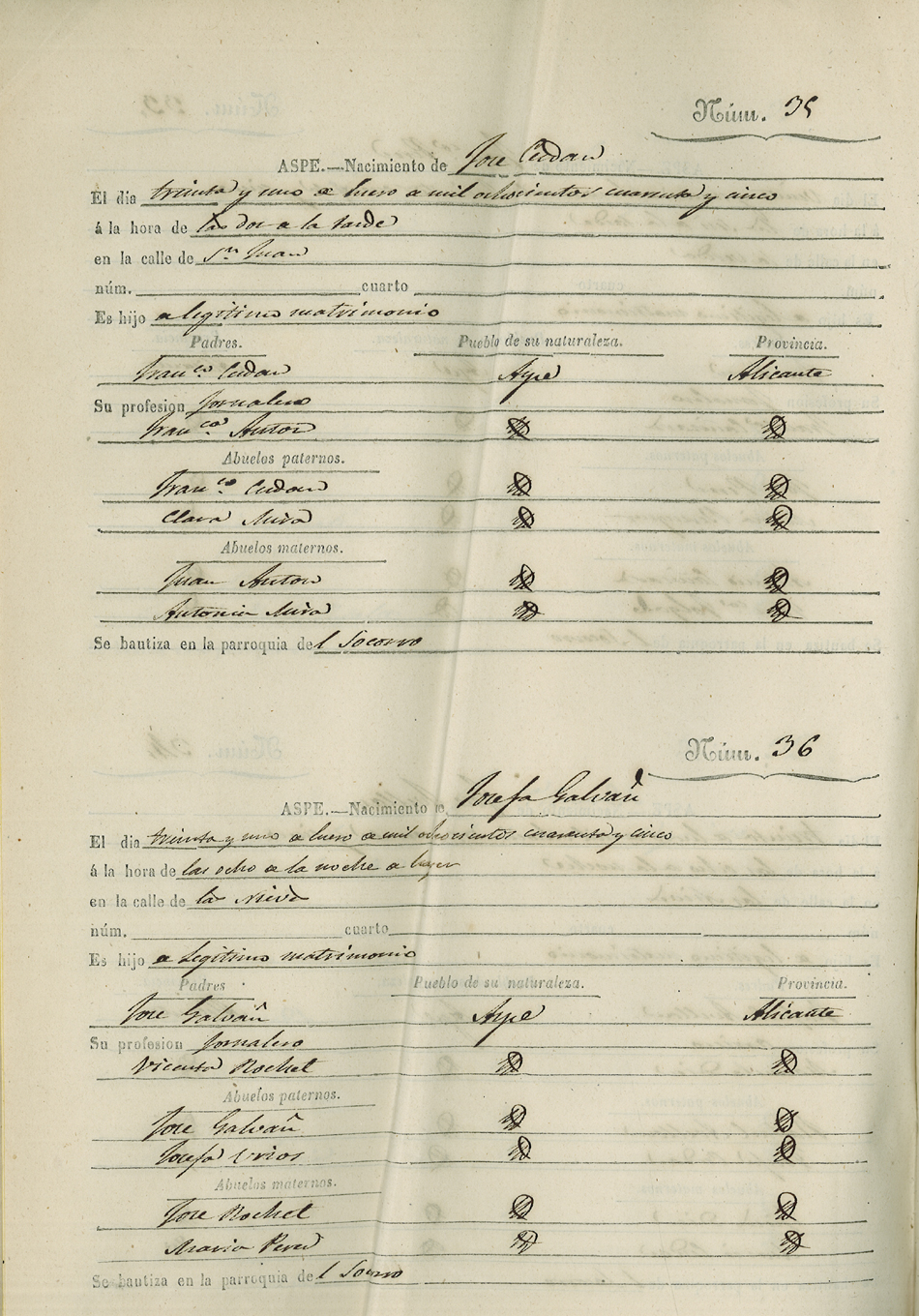 Registro civil de nacidos de la Villa de Aspe