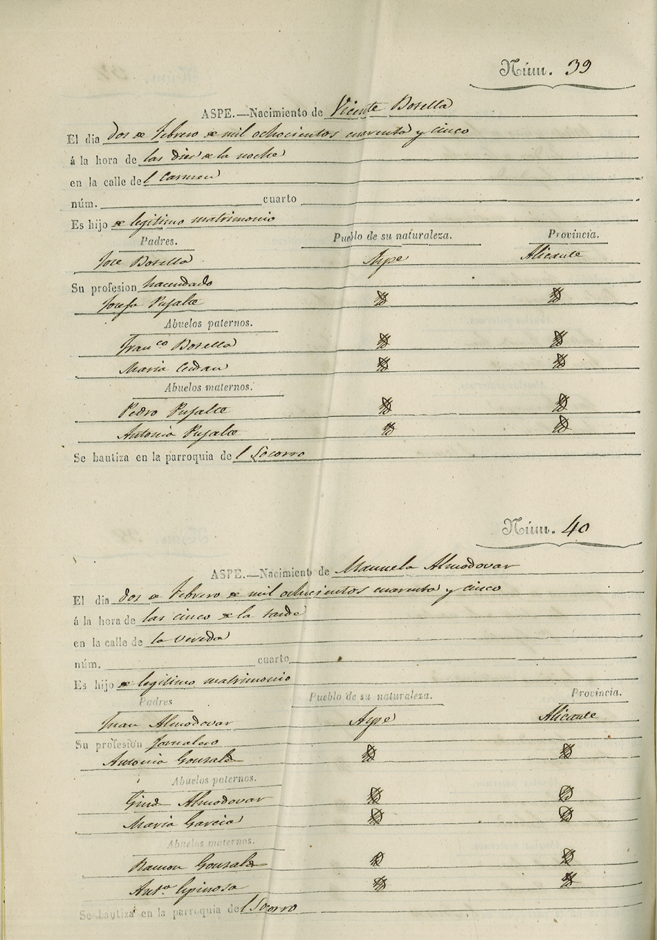 Registro civil de nacidos de la Villa de Aspe