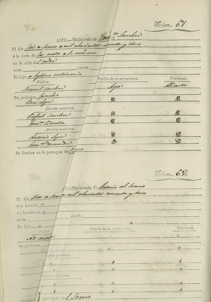 Registro civil de nacidos de la Villa de Aspe