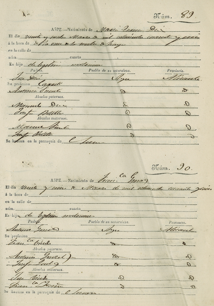 Registro civil de nacidos de la Villa de Aspe
