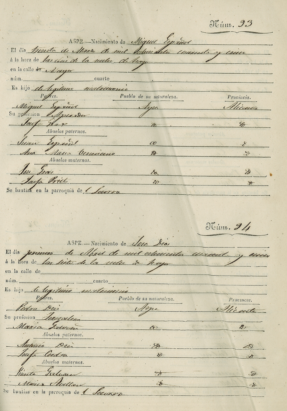Registro civil de nacidos de la Villa de Aspe