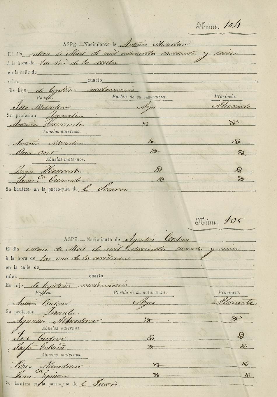 Registro civil de nacidos de la Villa de Aspe