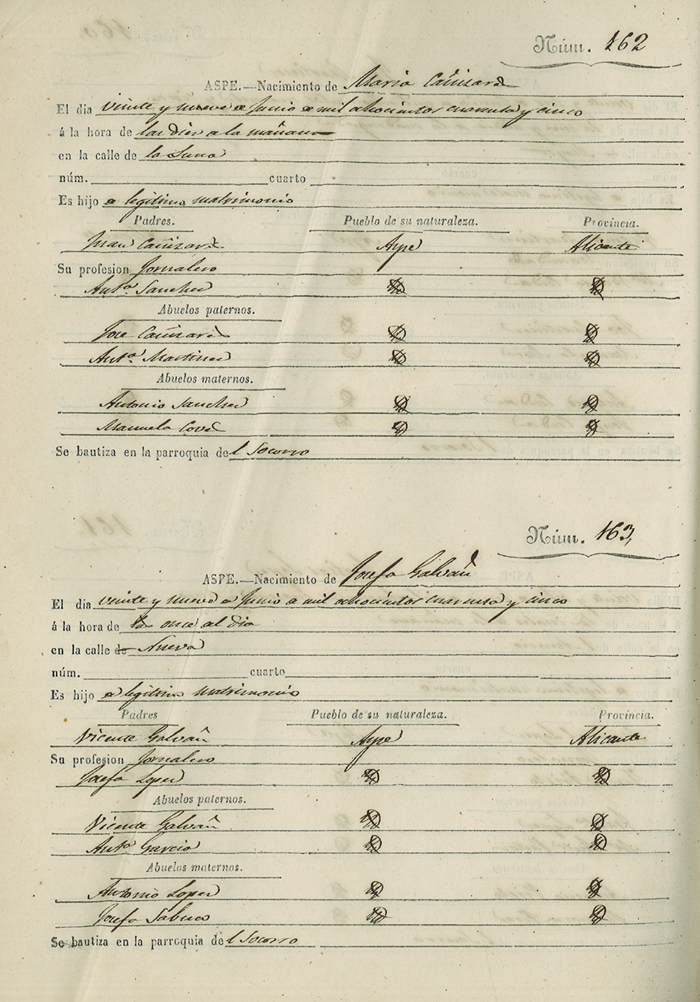 Registro civil de nacidos de la Villa de Aspe