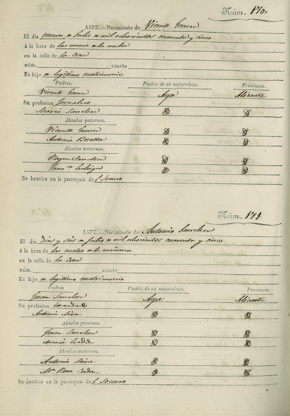 Registro civil de nacidos de la Villa de Aspe