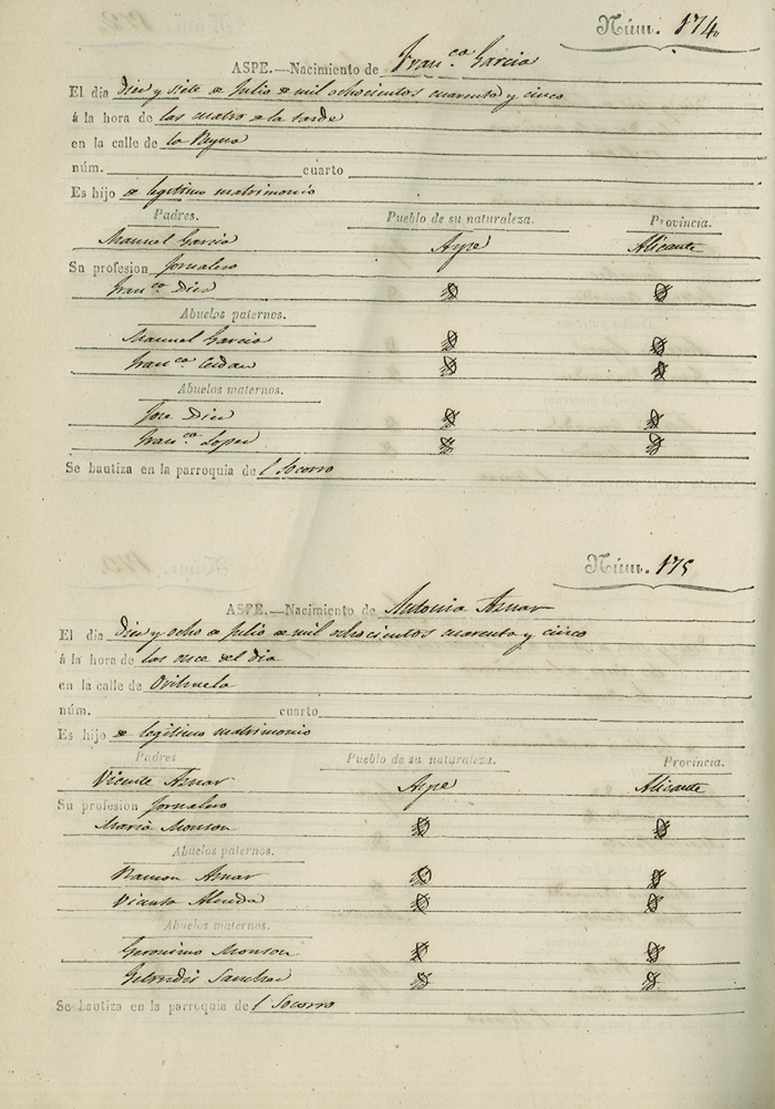 Registro civil de nacidos de la Villa de Aspe