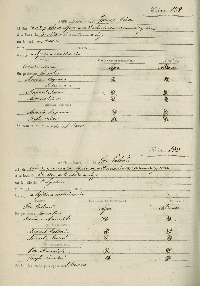 Registro civil de nacidos de la Villa de Aspe