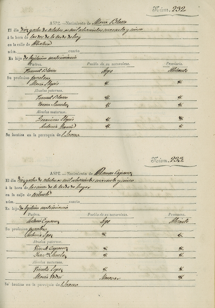 Registro civil de nacidos de la Villa de Aspe