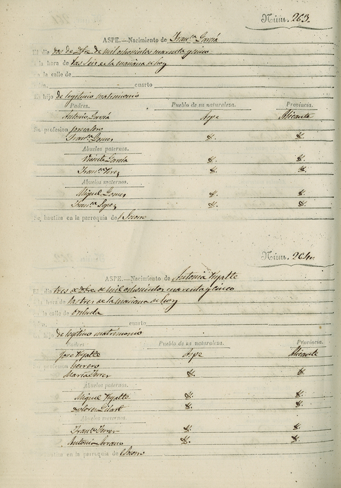 Registro civil de nacidos de la Villa de Aspe