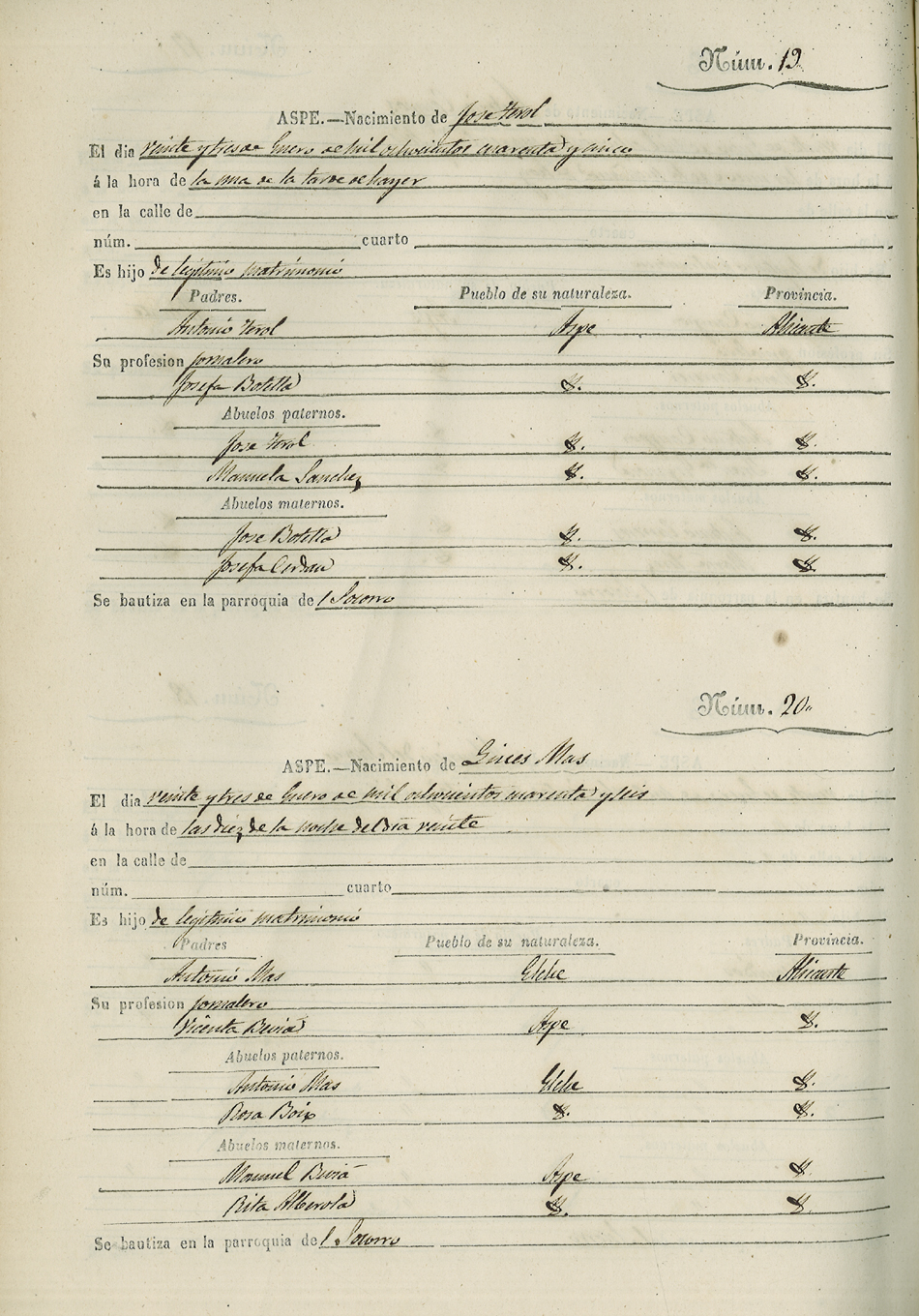 Registro civil de nacidos de la Villa de Aspe