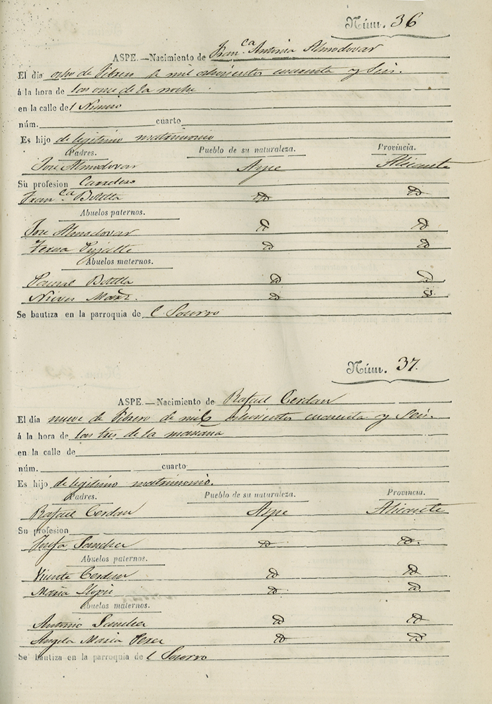 Registro civil de nacidos de la Villa de Aspe
