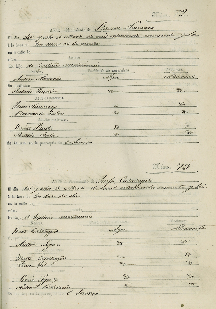 Registro civil de nacidos de la Villa de Aspe