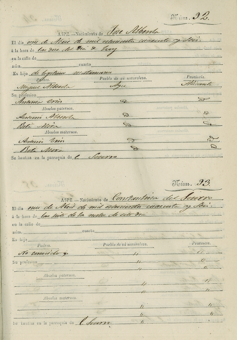 Registro civil de nacidos de la Villa de Aspe