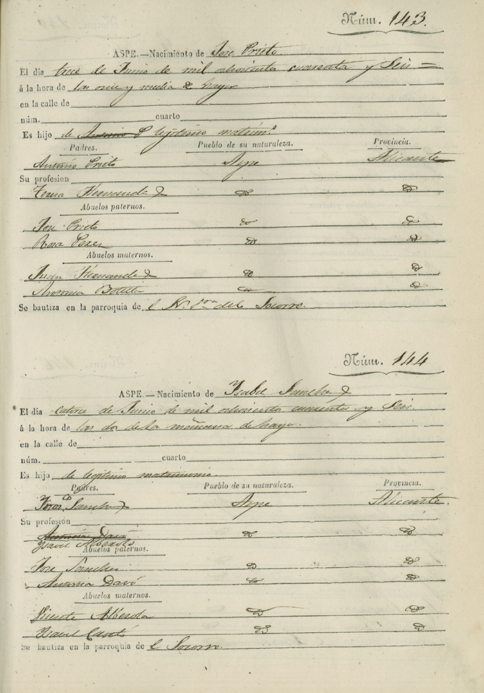 Registro civil de nacidos de la Villa de Aspe