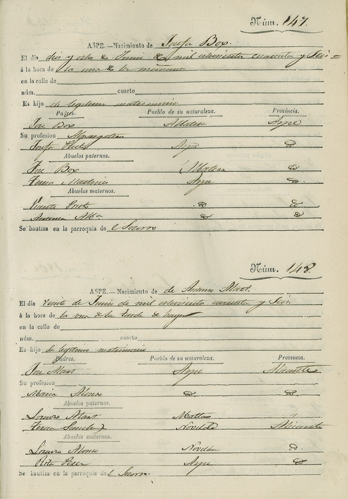Registro civil de nacidos de la Villa de Aspe