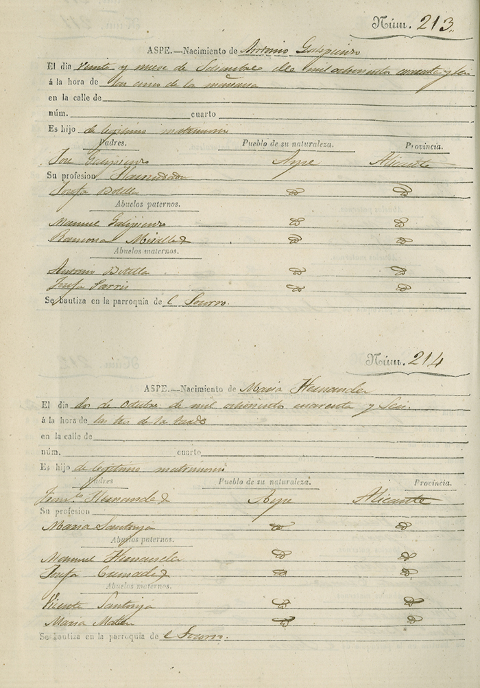 Registro civil de nacidos de la Villa de Aspe