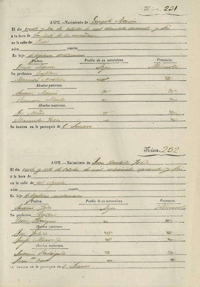 Registro civil de nacidos de la Villa de Aspe