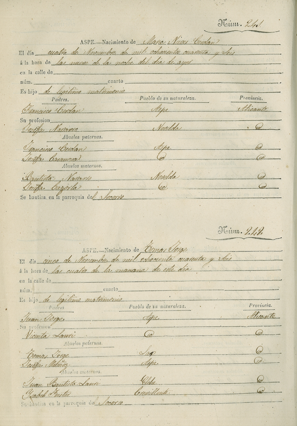Registro civil de nacidos de la Villa de Aspe