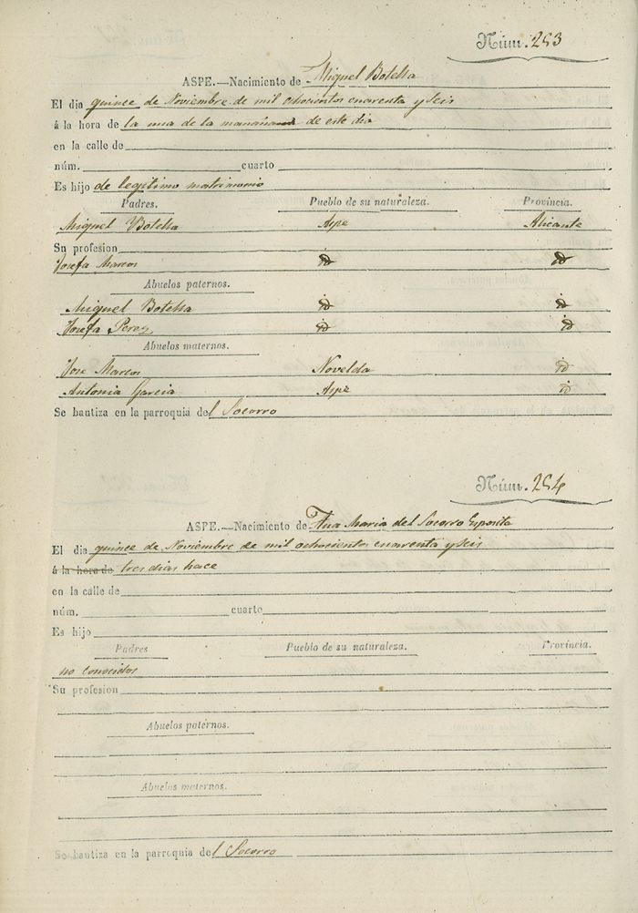 Registro civil de nacidos de la Villa de Aspe