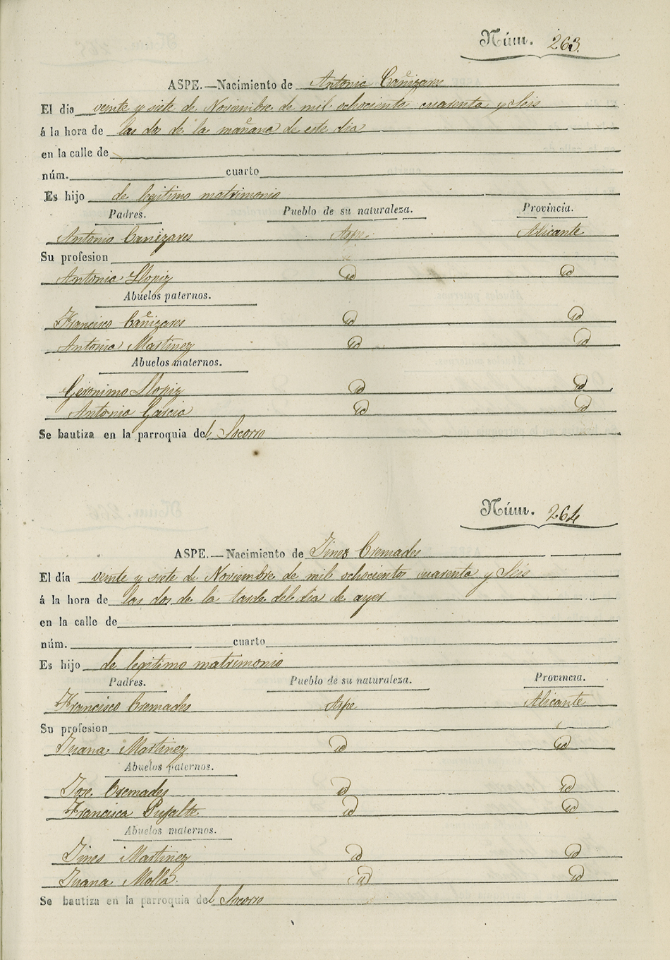Registro civil de nacidos de la Villa de Aspe