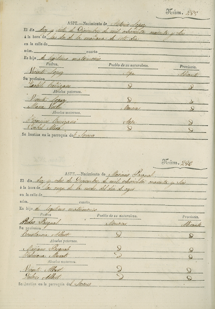 Registro civil de nacidos de la Villa de Aspe