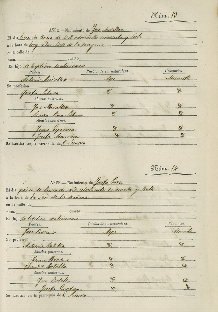 Registro civil de nacidos de la Villa de Aspe
