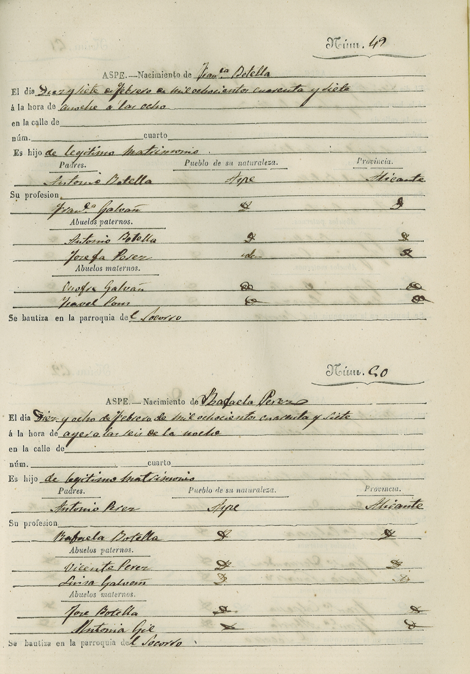 Registro civil de nacidos de la Villa de Aspe