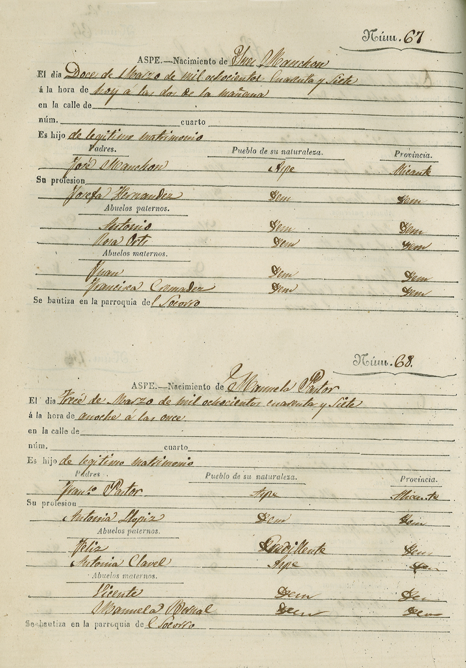 Registro civil de nacidos de la Villa de Aspe