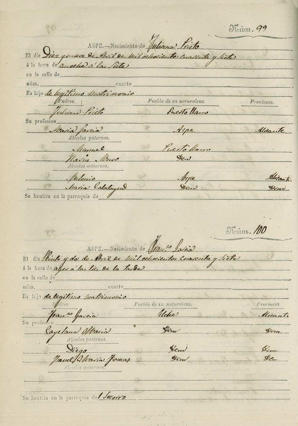Registro civil de nacidos de la Villa de Aspe