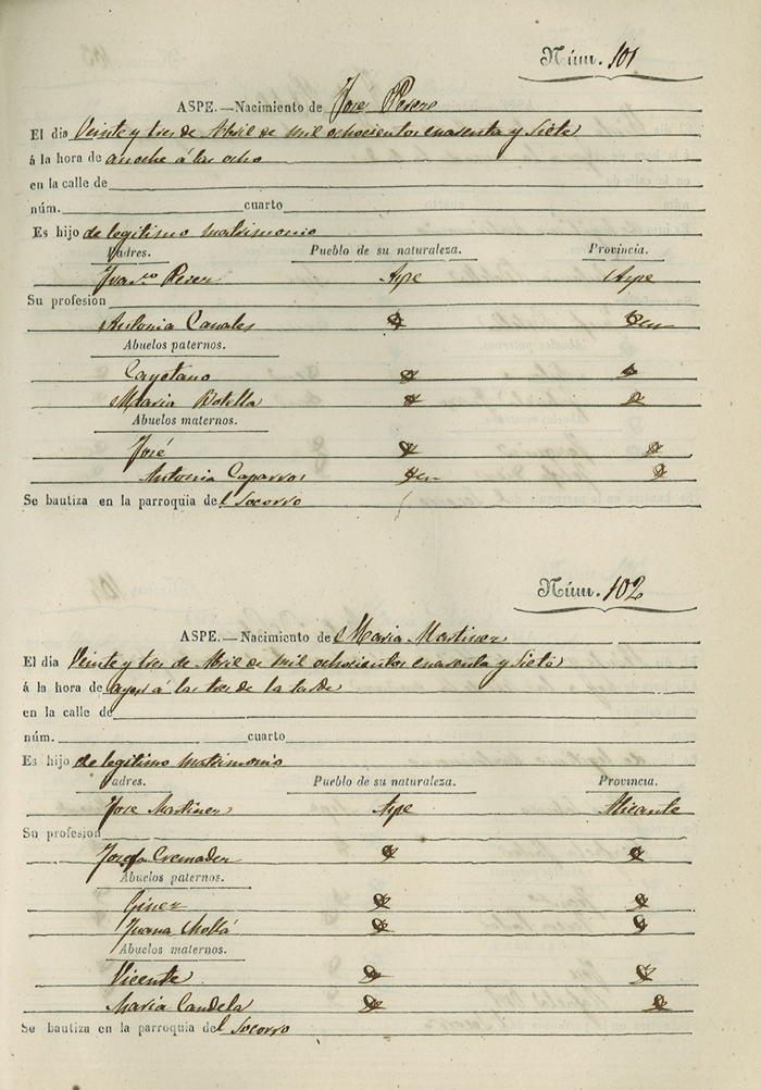Registro civil de nacidos de la Villa de Aspe