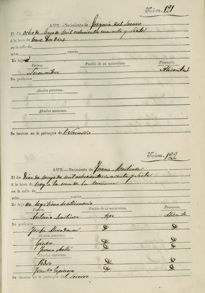 Registro civil de nacidos de la Villa de Aspe