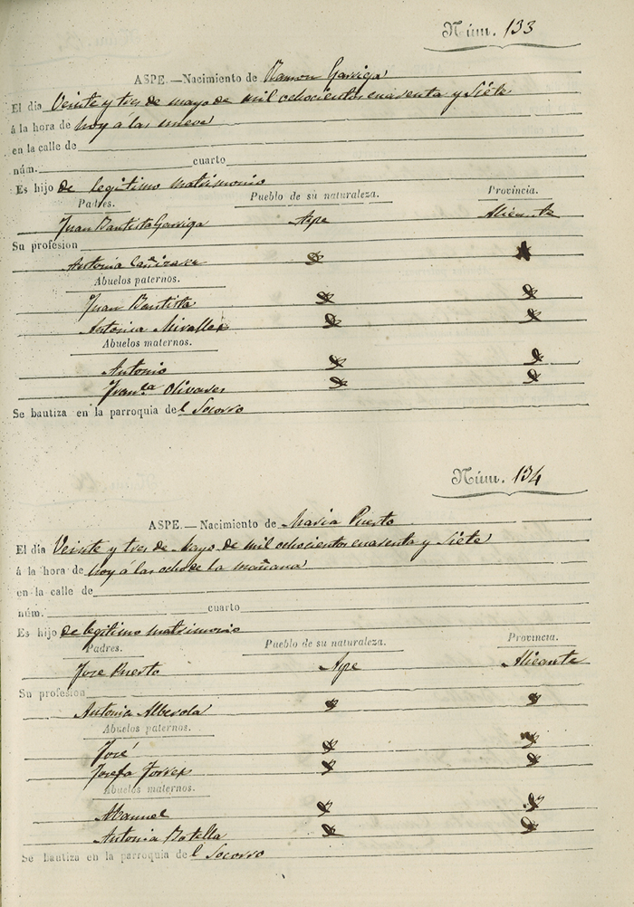 Registro civil de nacidos de la Villa de Aspe
