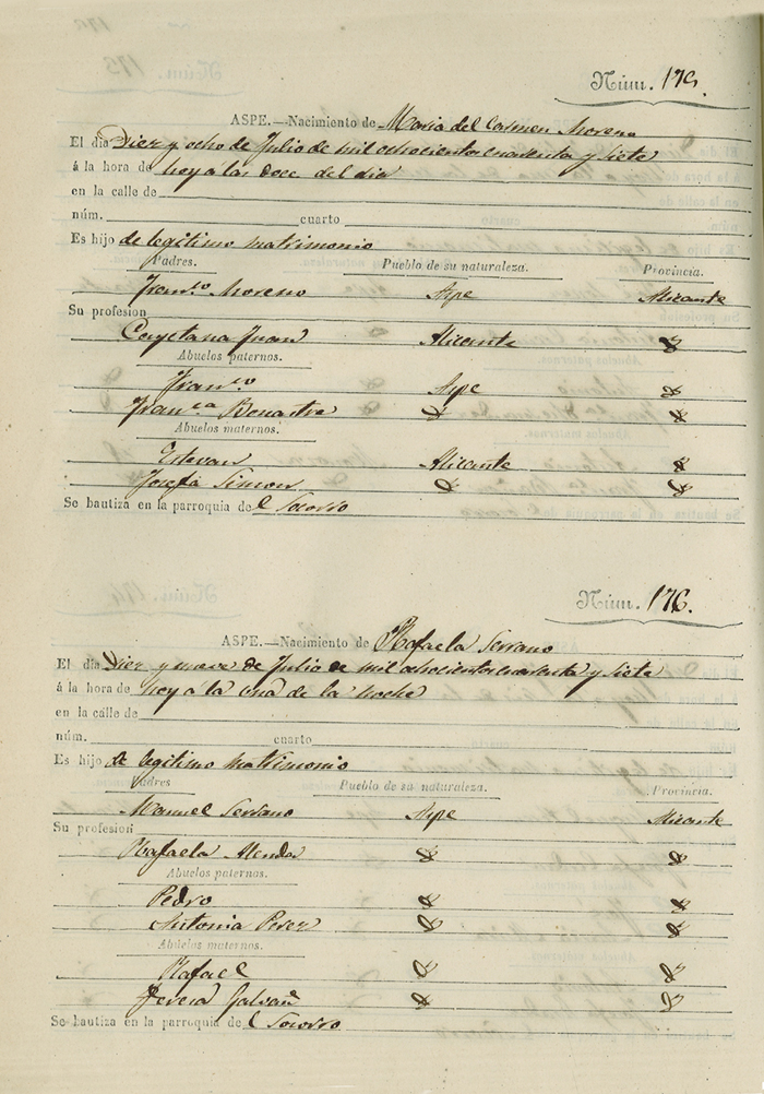 Registro civil de nacidos de la Villa de Aspe