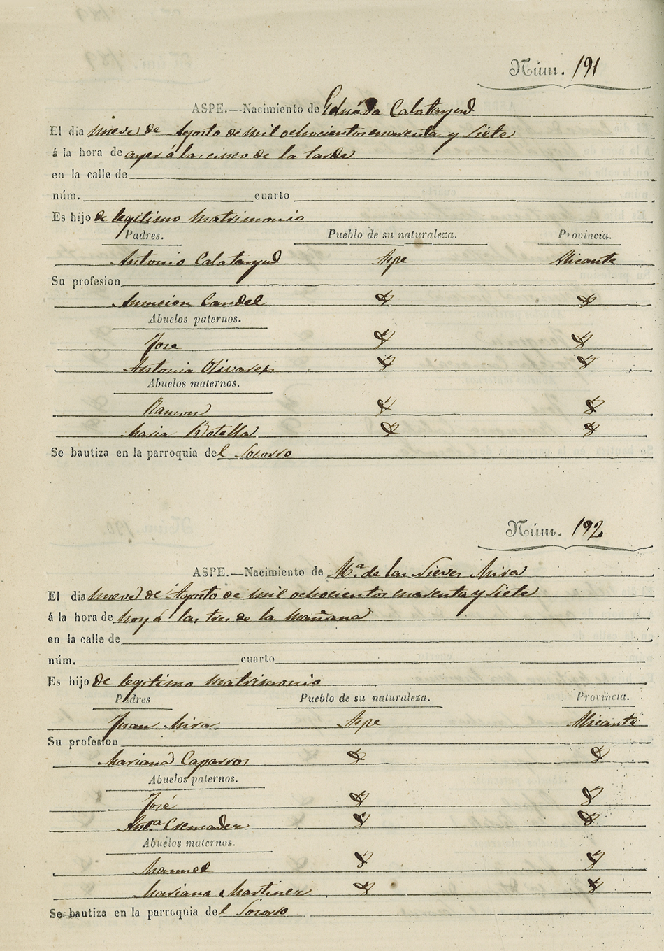 Registro civil de nacidos de la Villa de Aspe