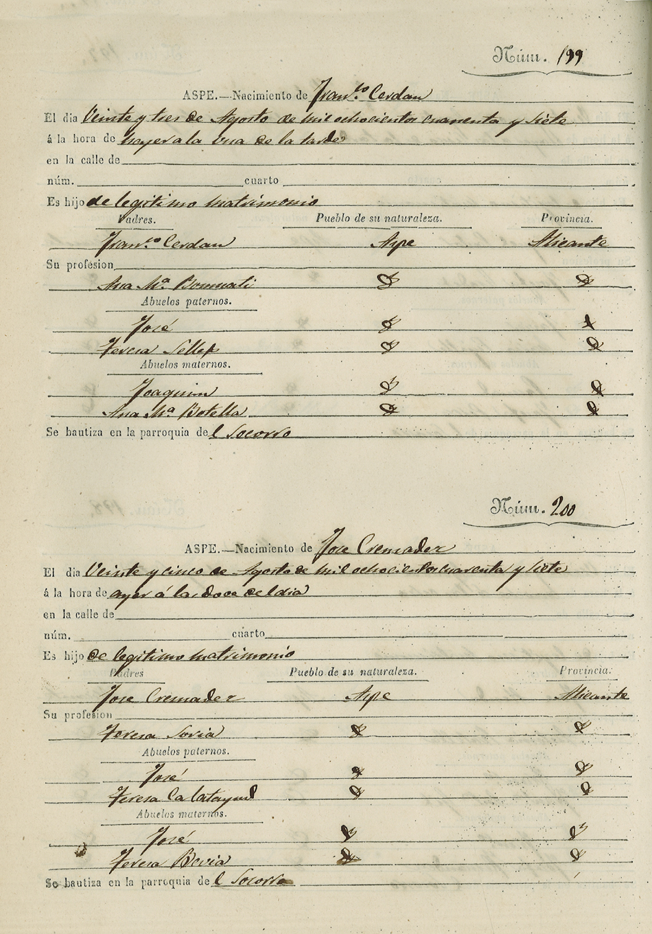 Registro civil de nacidos de la Villa de Aspe